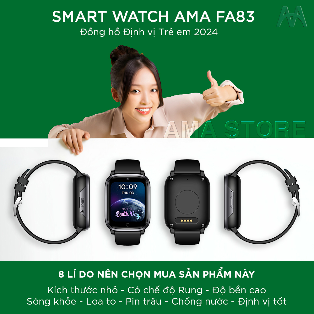 GIỚI THIỆU SẢN PHẨM AMA Smart Watch FA83 - Đồng Hồ Thông Minh Cho Trẻ Em Lưu ý: Không nên sử dụng sim Mobi, Intel vì sóng Mobi, Intel chập chờn không tương thích với