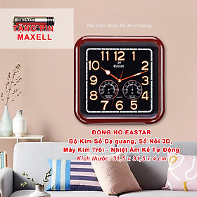 1. ĐẶC ĐIỂM NỔI BẬT: - Đồng hồ Treo tường Cao Cấp EASTAR KIM TRÔI NHẬT có Dạ quang (*), mặt vuông vát góc, kích thước 34,5 x 34, dày 5 cm. - Kiểu dáng