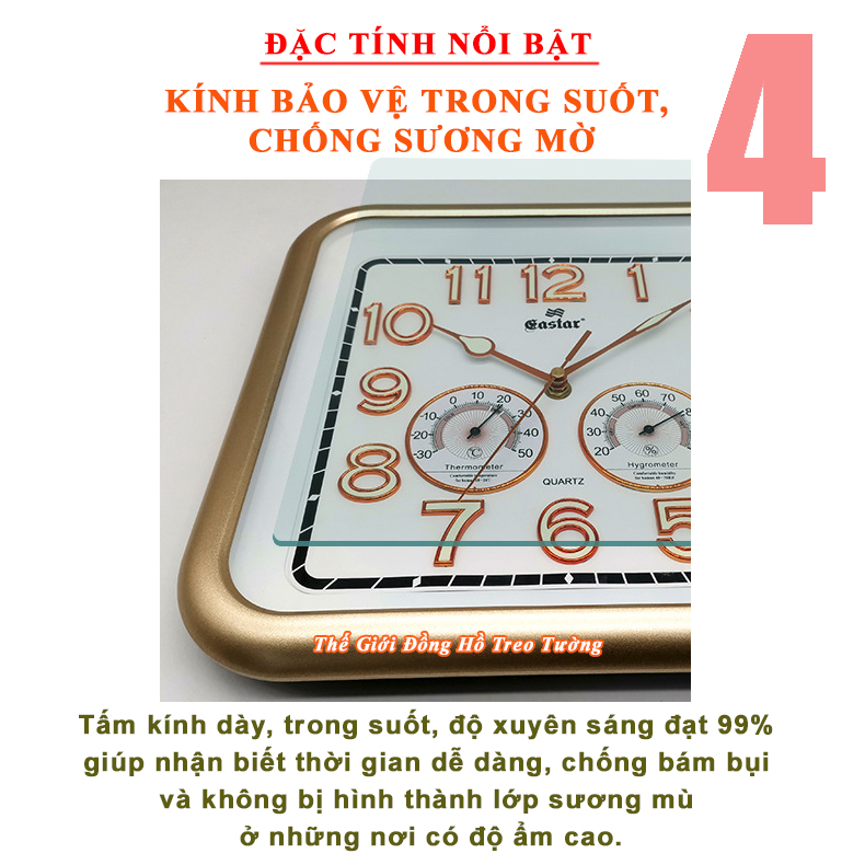 1. ĐẶC ĐIỂM NỔI BẬT: - Đồng Hồ Treo Tường Cao Cấp EASTAR Kim điện tử, Dạ quang, Đồng hồ Lịch Vạn Niên và Nhiệt kế hình Chữ nhật, Mặt kính Nổi, hiện đại, sang