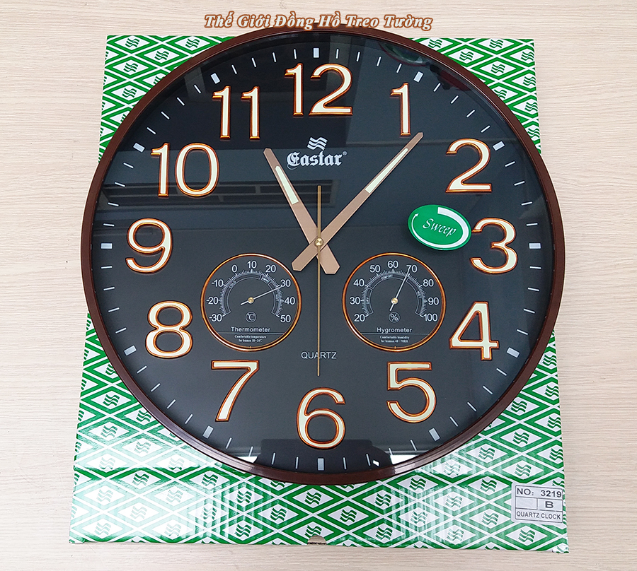 1. ĐẶC ĐIỂM NỔI BẬT: - Đồng hồ Treo tường Cao Cấp EASTAR có Dạ quang (*), máy đồng hồ Kim trôi mặt tròn Thương hiệu Gastar, đường kính 34 cm, dày 4,5 cm. -