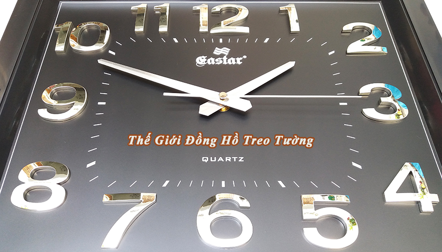 ✨Đồng Hồ Treo Tường KIM TRÔI EASTAR Chữ Nhật Mặt Đen – Mặt Kính 3D – Bộ Số Nổi Ánh Kim Bạc – Kèm Pin Maxell