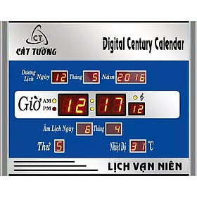 Đồng hồ treo tường Thông Tin Sản Phẩm Lịch Vạn Niên Cát Tường 3A sở hữu led điện tử sử dụng điện cùng kích thước nhỏ gọn đơn giản nhưng vẫn hiển thị đầy đủ