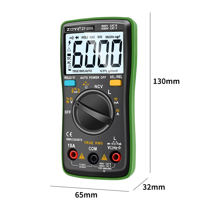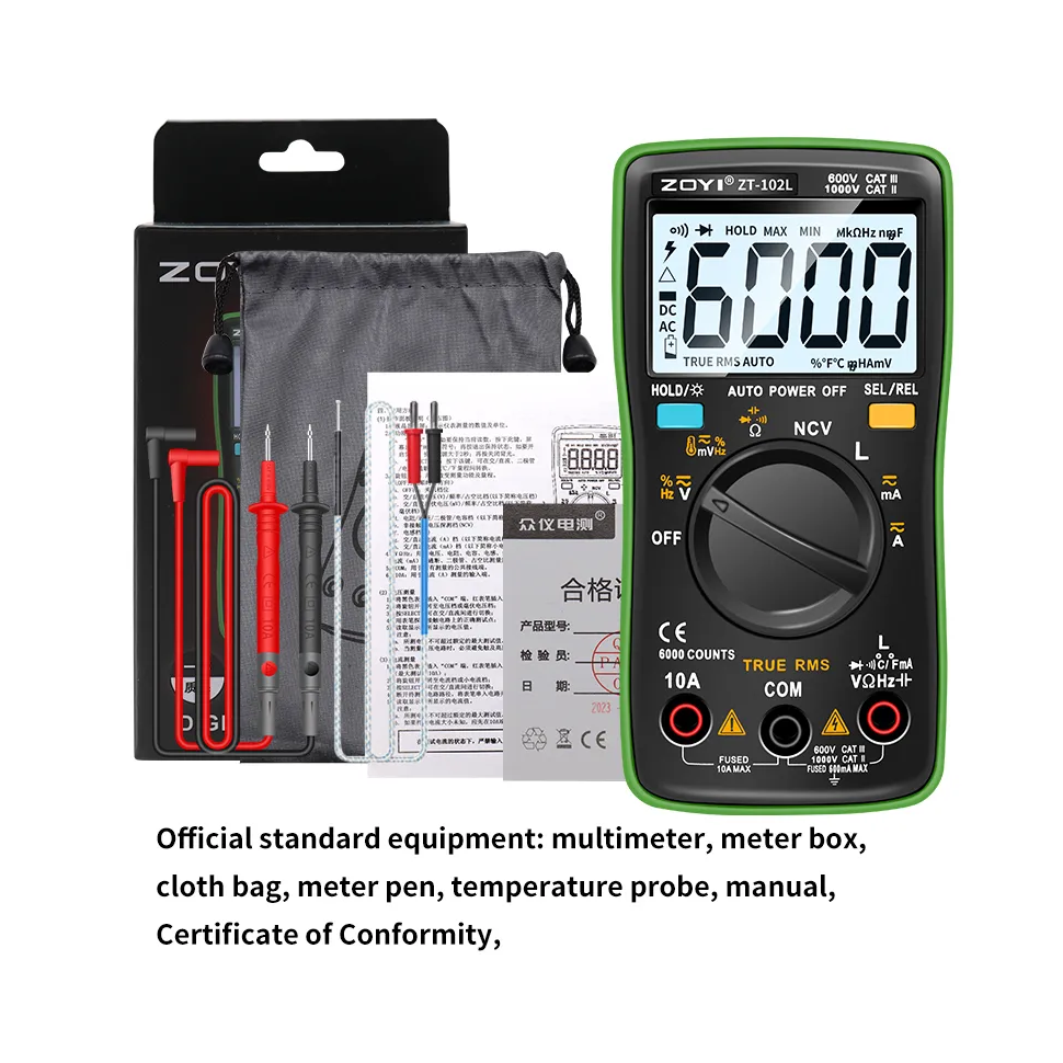 ✨Đồng Hồ Vạn Năng Đo Cuộn Cảm Kỹ Thuật Số Zoyi ZT-102L 6000 Số Đếm Tính Phạm Vi Tự Động Đèn Nền Ac/Dc Ampe Kế Volt Ohm Bút Thử Di Động Đồng Hồ Multimetro - Hàng Chính Hãng - Bảo Hành 12 Tháng
