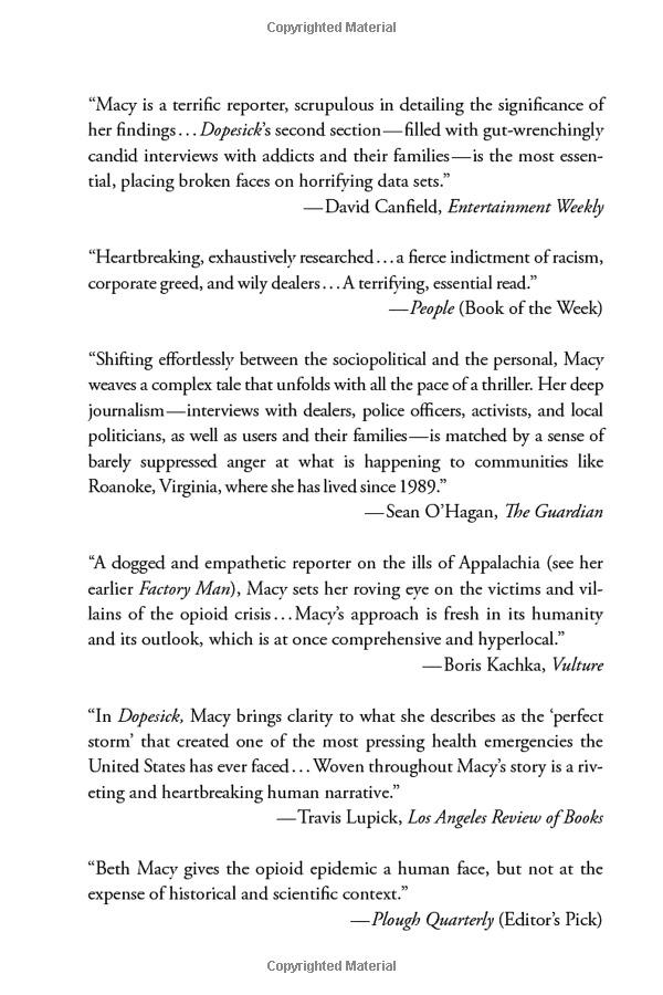 👁️ 207 | ⌚2025-10-01 04:49:57.947Joan Mackenzie reviews Dopesick by Beth MacyBook Review - Dopesick by Beth MacyDopesick: Dealers, Doctors, and the Drug Company that Addicted America by Beth Macy | Free Audiobook“Dopesick” Author: Opioid Overdose Deaths Reaching Record Highs | Amanpour and CompanyDopesick: Dealers, Doctors, & the Drug Company That Addicted America429 - Book Club—Dopesick: Dealers, Doctors, and the Drug Company That Addicted America with...