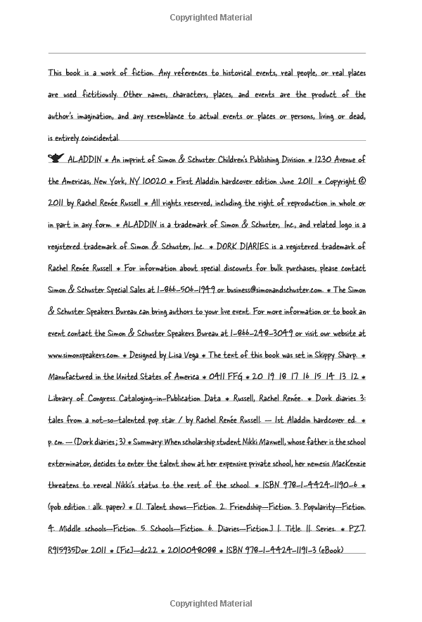 Nikki Maxwell has been doing everything she can to keep everyone at school from learning the truth--that she's there on scholarship in exchange for her Dad working as the school's exterminator. The last thing Nikki needs is having her friends and--worst case scenario--her crush, Brandon, associating her with the humongous roach on top of her Dad's van! Now it looks like her secret could be about to come out, and Nikki's willing to go to any zany and wacky length to prevent that from happening. The timing seems perfect when a major talent competition is announced with a school scholarship offered as the top prize. Nikki loves to sing and dance and now she gets to have tons of fun with her friends while competing for a chance to free her Dad from his obligation! (And free herself from all that potential damage to her reputation . . .) Once again, hijinks and misunderstandings aplenty ensue, as well as more hilarious and heartwarming moments with Nikki and her friends.
