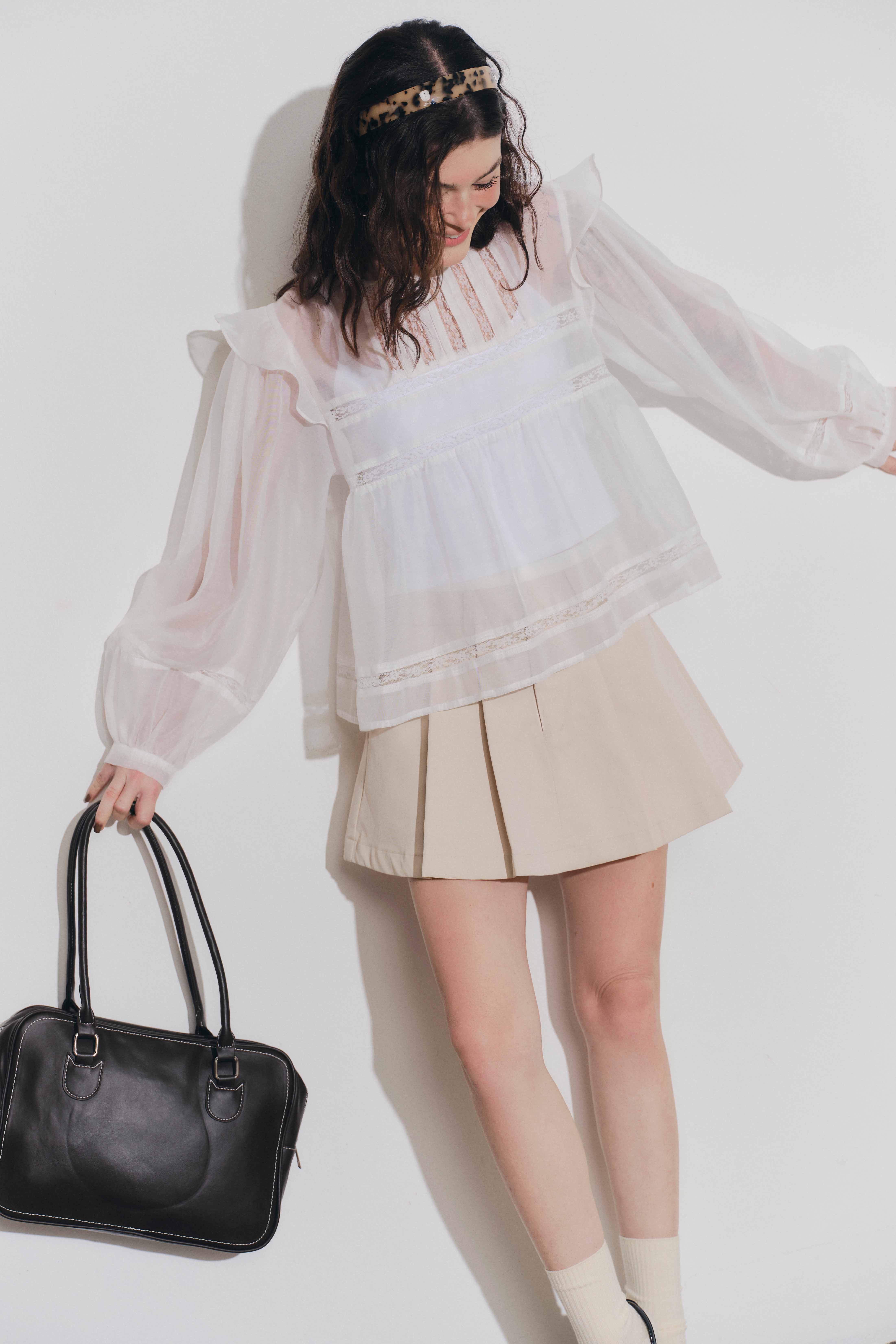 ✨DOTTIE - Áo phối đăng ten và ly - Trắng - T1132
