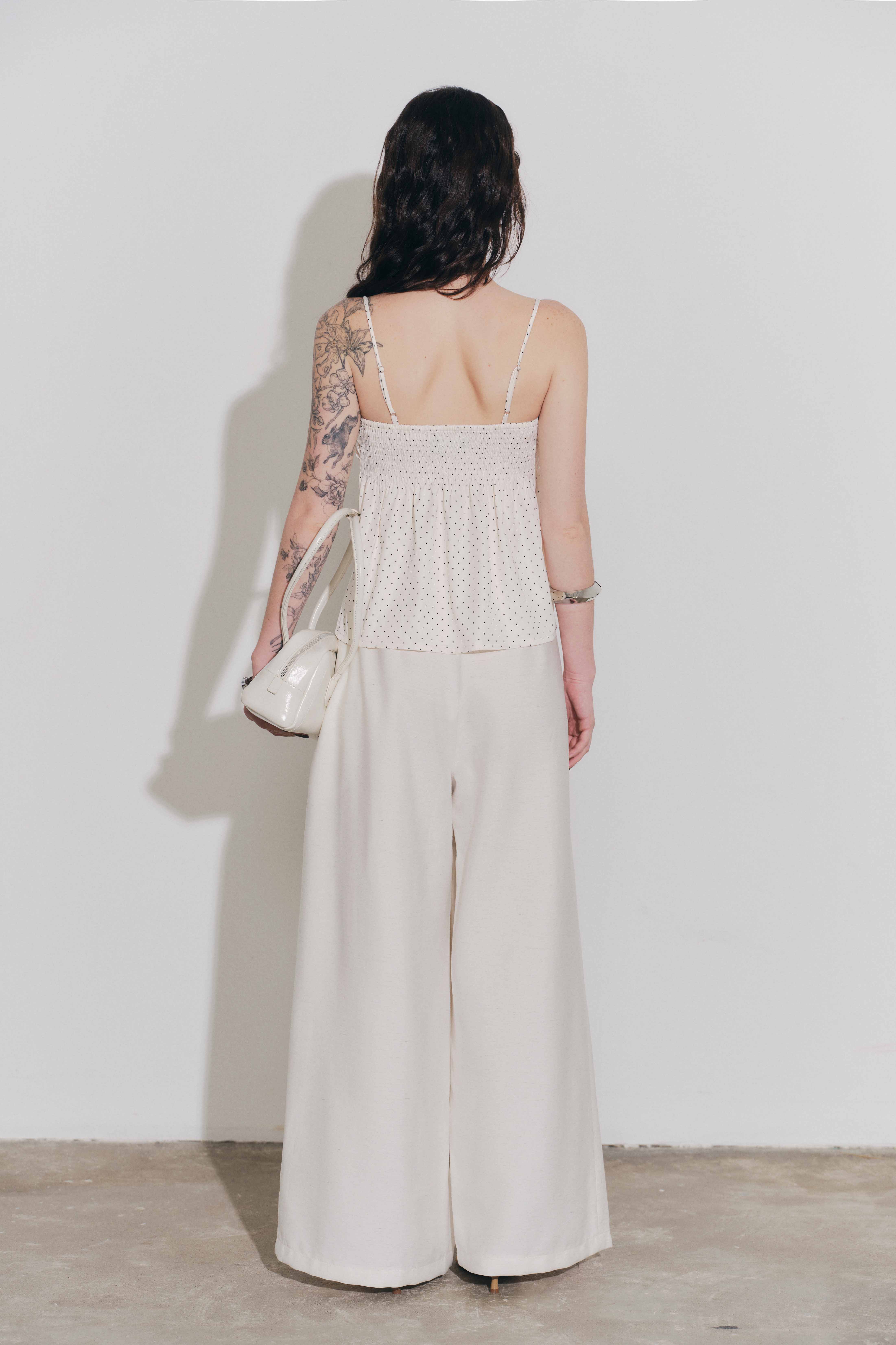 - Màu sắc : Trắng - Chất liệu : Tơ - Đặc tính : Nhẹ, thoáng mát. - Lưu ý giặt ủi : Giặt riêng, giặt tay, giặt máy Ủi ở nhiệt độ thấp - Size : S / M / L - Thông số sản phẩm : Dài quần / Ngang eo / Ngang ống S: 98 / 67 / 70 M: 100 / 71 / 72 L: 100 / 75 / 74 LƯU Ý: + Bảng size chart chỉ mang tính chất tham khảo, tùy thuộc vào số đo cơ thể Dottie sẵn sàng tư vấn cho bạn. + Nếu cần Dottie hỗ trợ về sản phẩm, khi mở sản phẩm bạn vui lòng quay lại video quá trình mở sản phẩm giúp Dottie nhen. + Giặt riêng với đồ tối màu + Khuyến khích giặt tay đối với những sản phẩm trắng + Hạn chế sấy ở nhiệt độ cao QUY ĐỊNH ĐỔI TRẢ