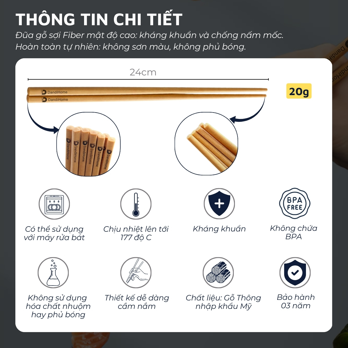 ✨Đũa gỗ fiber mật độ cao DandiHome dùng được trong máy rửa bát - Bảo hành 3 năm