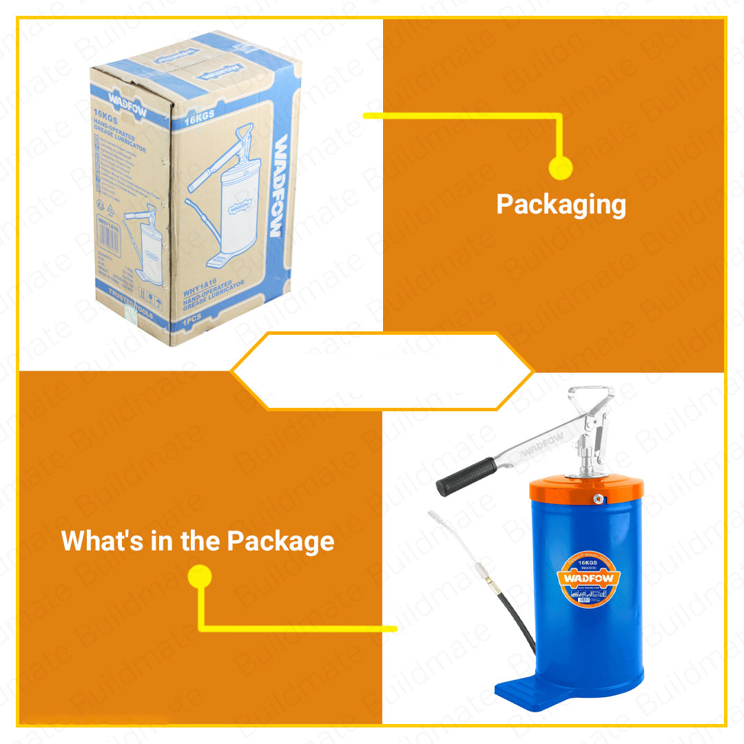 Dụng cụ bơm mỡ bò bằng tay 16kg WadFow WHY1A16 Một công cụ mạnh mẽ và tiện lợi, được thiết kế để bơm mỡ bò một cách hiệu quả và dễ dàng. Với khả năng tạo áp suất cao và khung thùng mỡ chất lượng, sản phẩm này là lựa chọn tốt để duy trì và bảo dưỡng các thiết bị cơ khí.