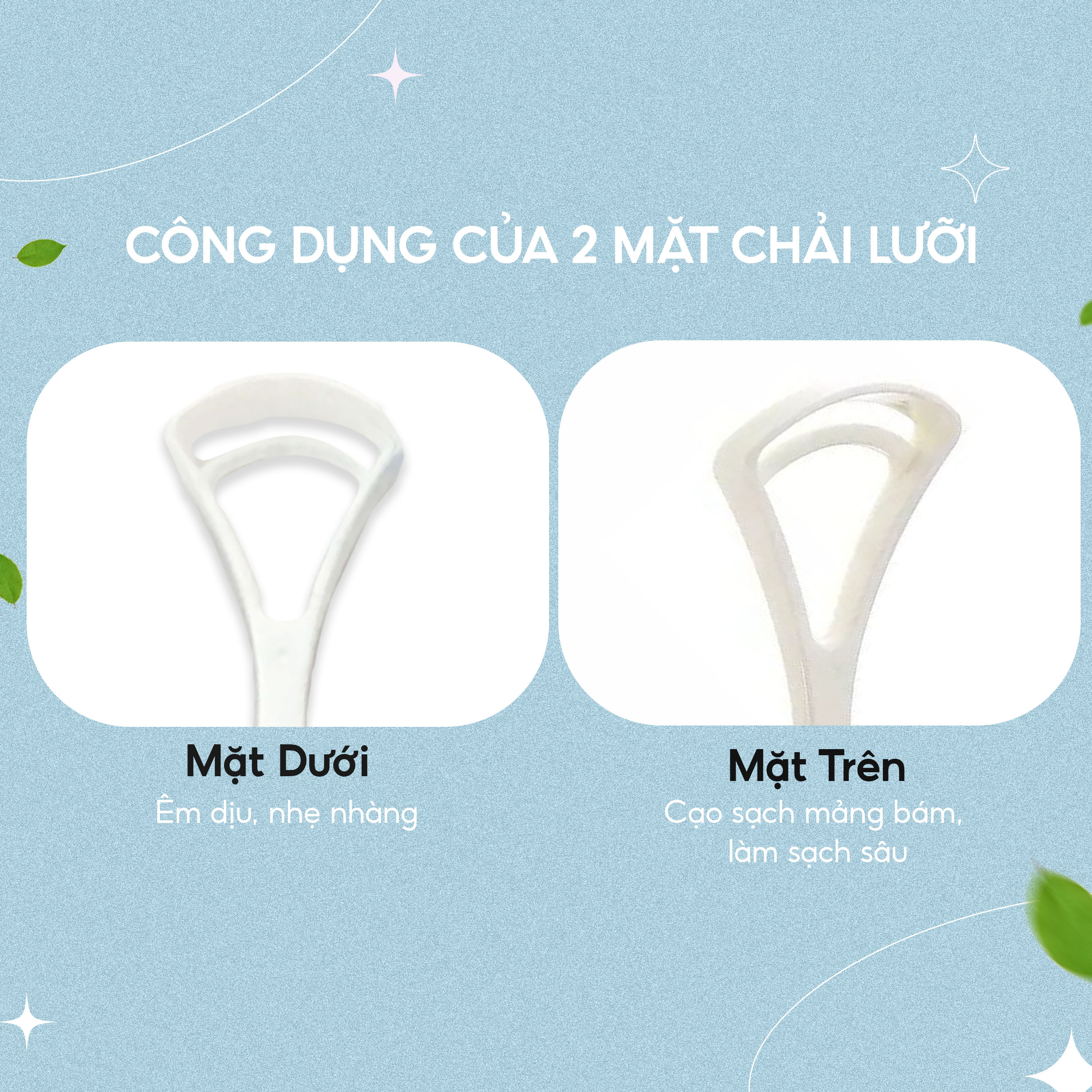 - Thiết kế 2 lớp tăng cường khả năng vệ sinh lưỡi, có thể sử dụng ở cả 2 mặt trước và sau. Mặt sau thiết kế cong mềm mại với 2 lớp, cho cảm giác nhẹ nhàng không gây rát, mặt trước sử dụng khi cần làm sạch sâu bề mặt lưỡi.
