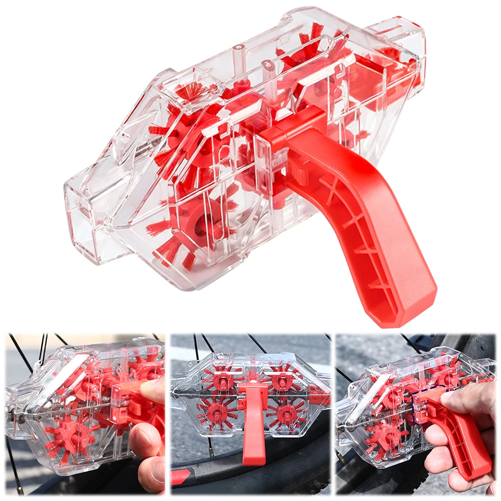 Giữ xe đạp trơn tru với dụng cụ làm sạch chuỗi sên xích, có thiết kế trong suốt, tay cầm thả nhanh và cổng đổ dung dịch tiện lợi.