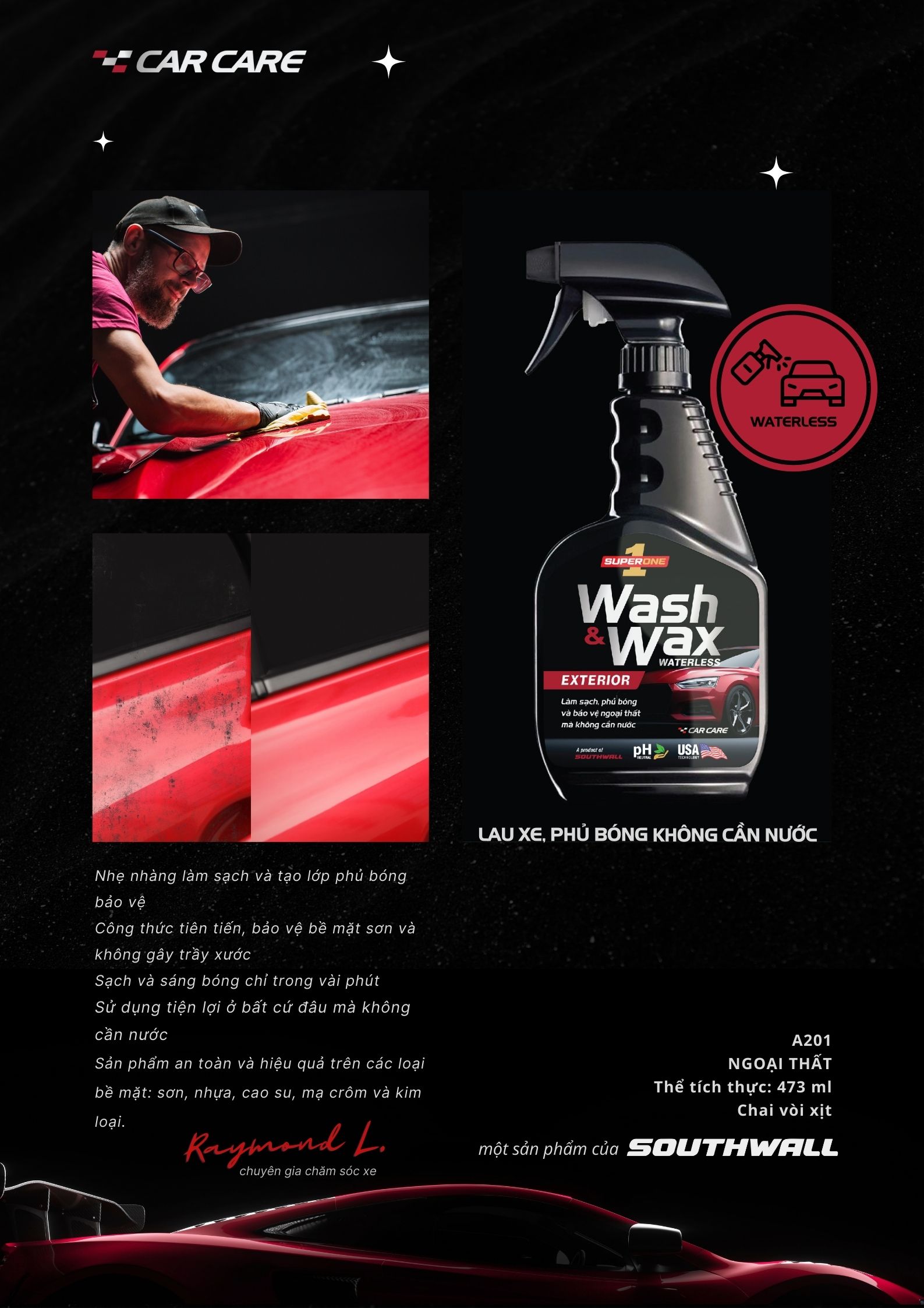 LÀM SẠCH, PHỦ BÓNG VÀ BẢO VỆ NGOẠI THẤT MÀ KHÔNG CẦN NƯỚC   Dung Dịch Lau Xe Và Phủ Bóng Ngoại Thất Không Cần Nước Super One Waterless Wash And Wax –