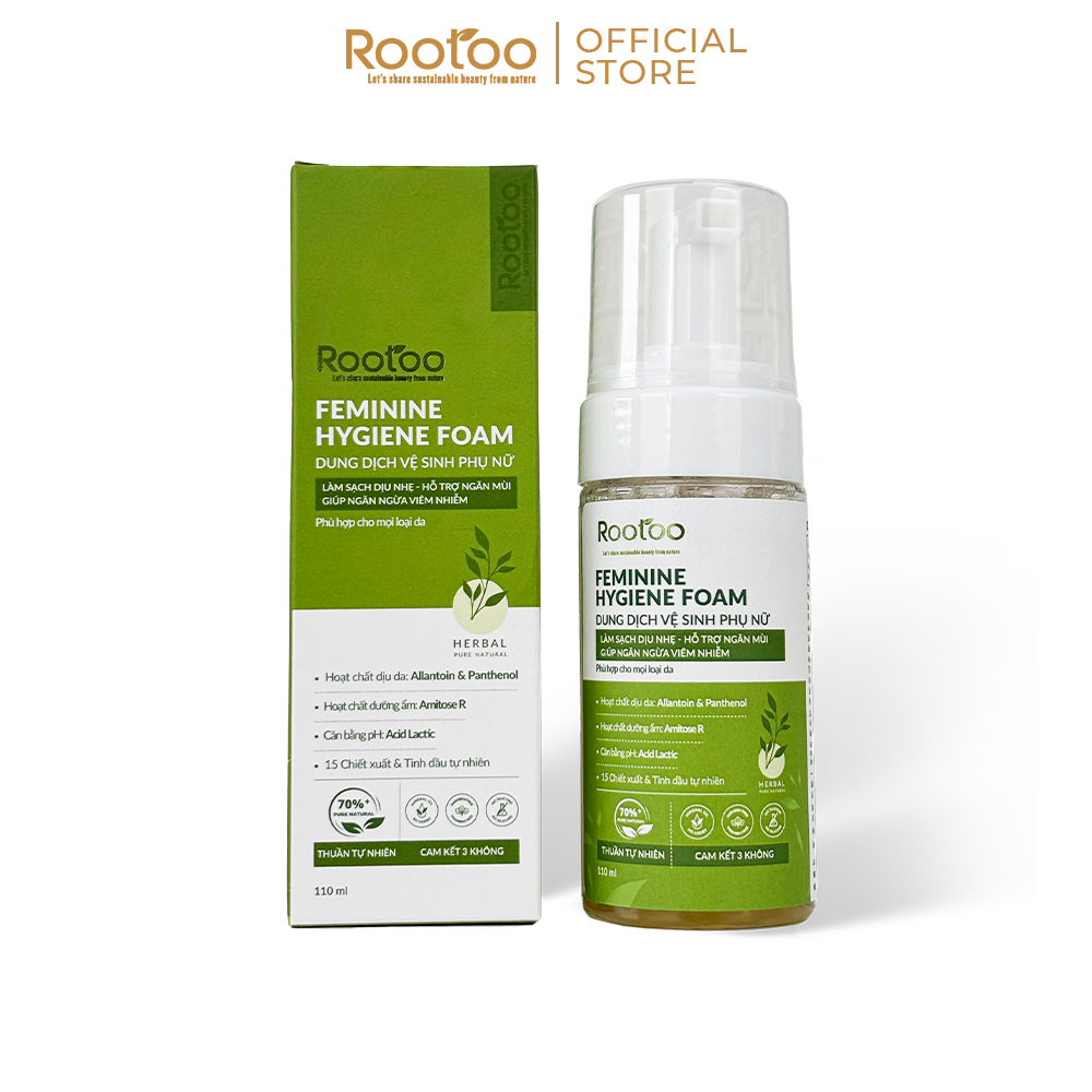 Dung Dịch Vệ Sinh Phụ Nữ Rootoo - Feminine Hygiene Foam mang đến cho bạn cảm giác thoải mái và tự tin hàng ngày. Với thành phần từ các loại chiết xuất và tinh dầu