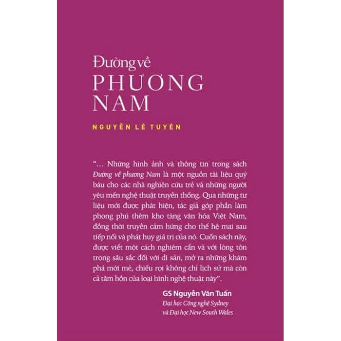 “... Những hình ảnh và thông tin trong sách Đường về phương Nam là một nguồn tài liệu quý báu cho các nhà nghiên cứu trẻ và những người yêu mến nghệ thuật truyền thống. Qua những tư liệu mới được phát hiện, tác giả góp phần làm phong phú thêm kho tàng văn hóa Việt Nam, đồng thời truyền cảm hứng cho thế hệ mai sau tiếp nối và phát huy giá trị của nó. Cuốn sách này, được viết một cách nghiêm cẩn và với lòng tôn trọng sâu sắc đối với di sản, mở ra những khám phả mới mẻ, chiếu rọi không chỉ lịch sử mà còn cả tâm hồn của loại hình nghệ thuật này” - GS Nguyễn Văn Tuấn; Đại học Công nghệ Sydney và Đại học New South Wales