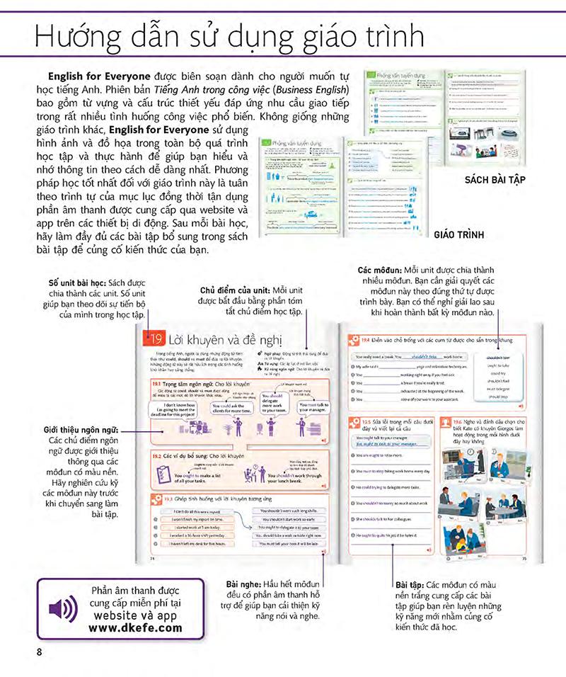 Đây là giáo trình chuyên sâu giúp bạn tự học tiếng Anh thương mại theo phương thức trực quan sinh động. Bên cạnh phần lý thuyết, sách còn cung cấp các bài tập thực hành và cho phép người học tải ngữ liệu nghe hiểu miễn phí. Việc học tiếng Anh thương mại chưa bao giờ dễ dàng như vậy.
