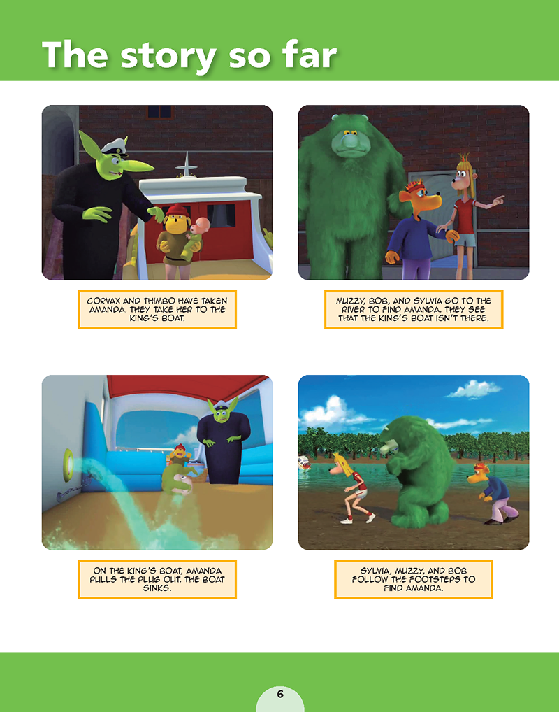 Những cuốn sách giáo khoa này sử dụng các video và cốt truyện gốc của Muzzy làm nền tảng để xây dựng các kỹ năng ngôn ngữ cơ bản và phát triển từ vựng, ngữ pháp, phát âm và sự trôi chảy ở trẻ học tiếng Anh như một ngoại ngữ.
