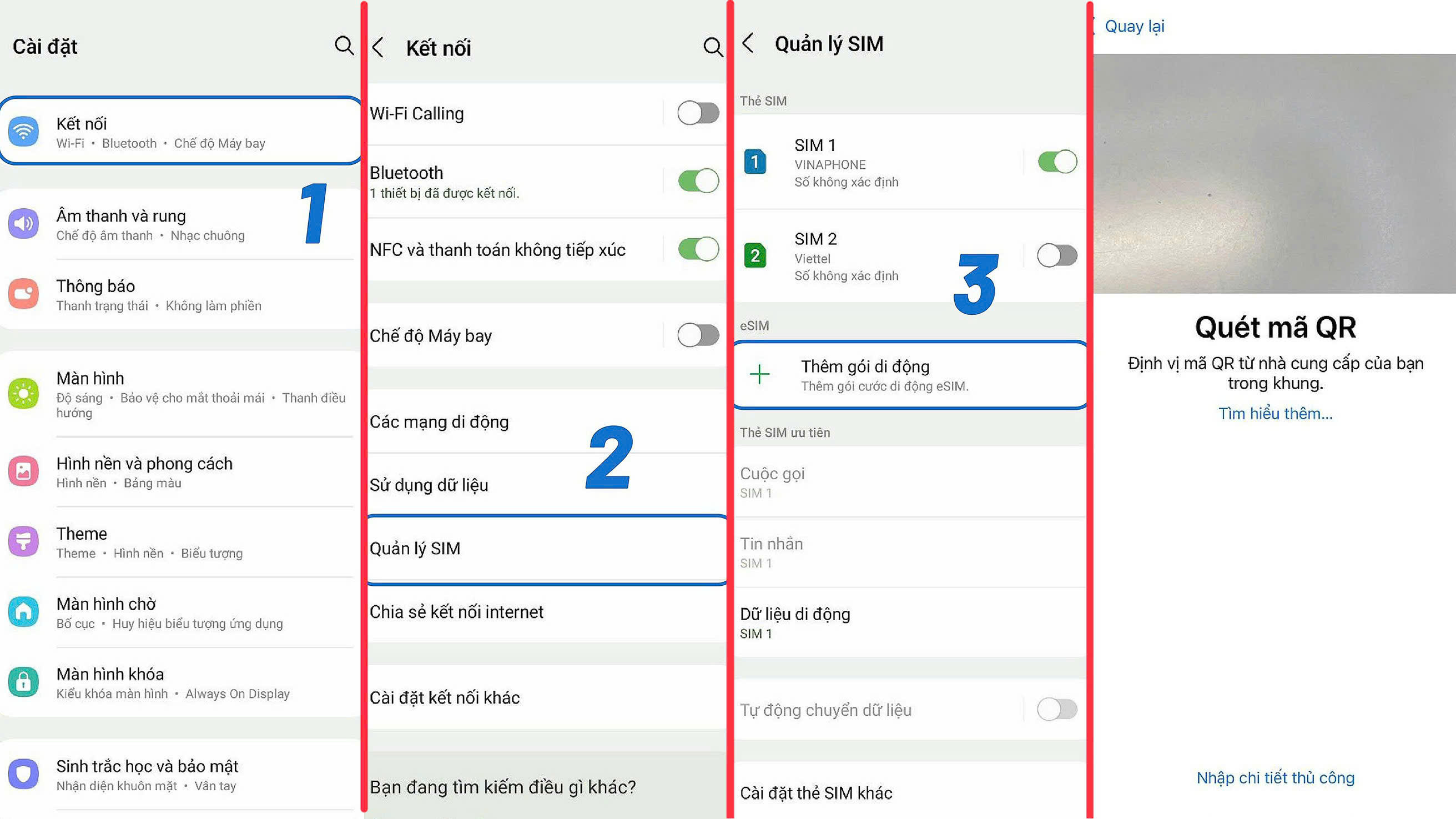 Không cần tháo SIM chính (nếu máy hỗ trợ 2 SIM: 1 eSIM + 1 vật lý).