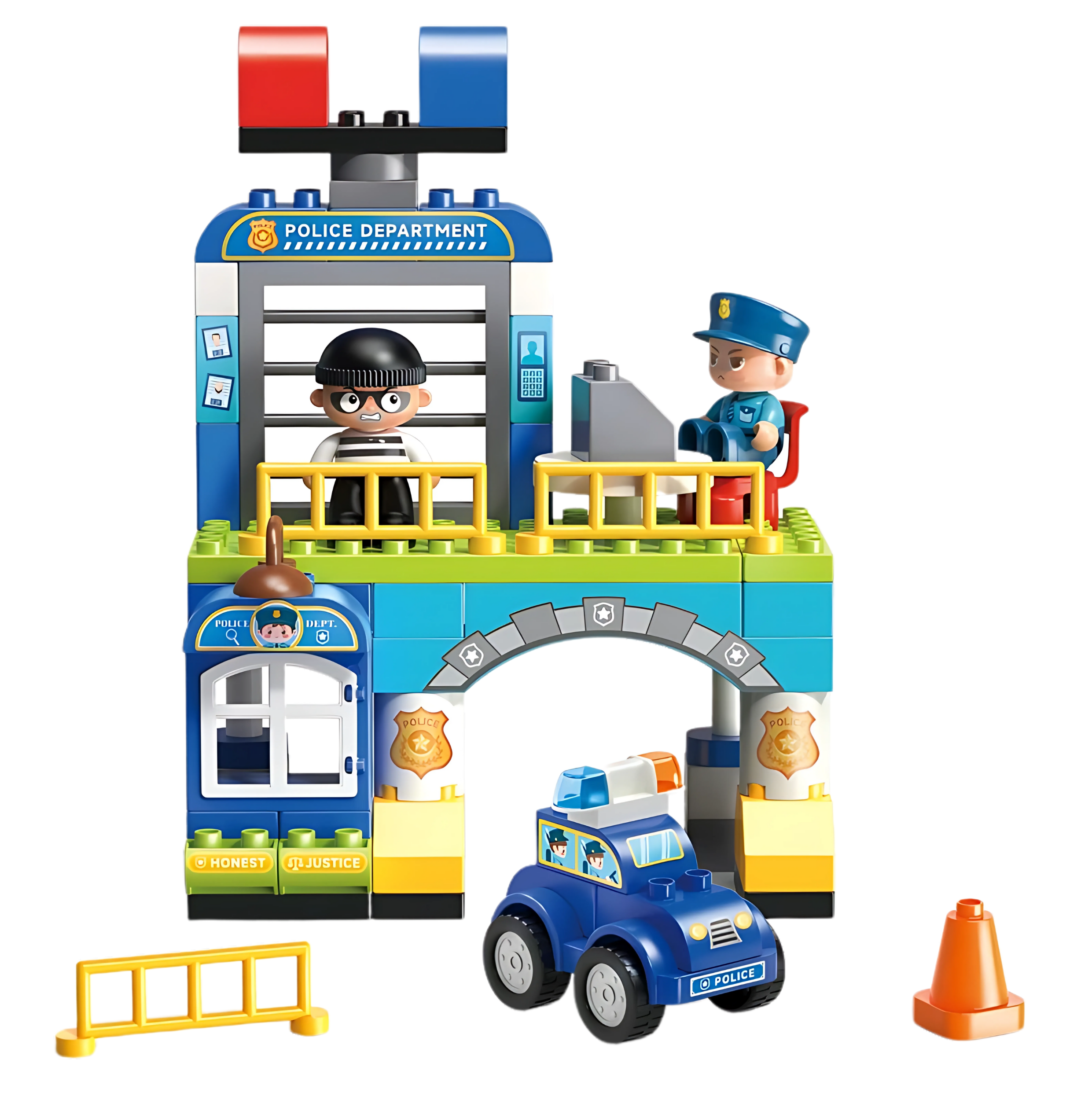 Mua tại TiktokĐồn cảnh sát lắp ráp – FEELO (63 PCS) – Bộ đồ chơi lắp ráp mô phỏng đồn cảnh sát sinh động với xe tuần tra, nhân vật cảnh sát và các chi tiết như cổng gác, rào chắn – Gồm 63 chi tiết lớn, dễ lắp ráp, an toàn cho trẻ từ 3 tuổi trở lên – Giúp bé hóa thân thành cảnh sát, phát triển khả năng quan sát, tư duy logic và kỹ năng kể chuyện qua các tình huống giao thông