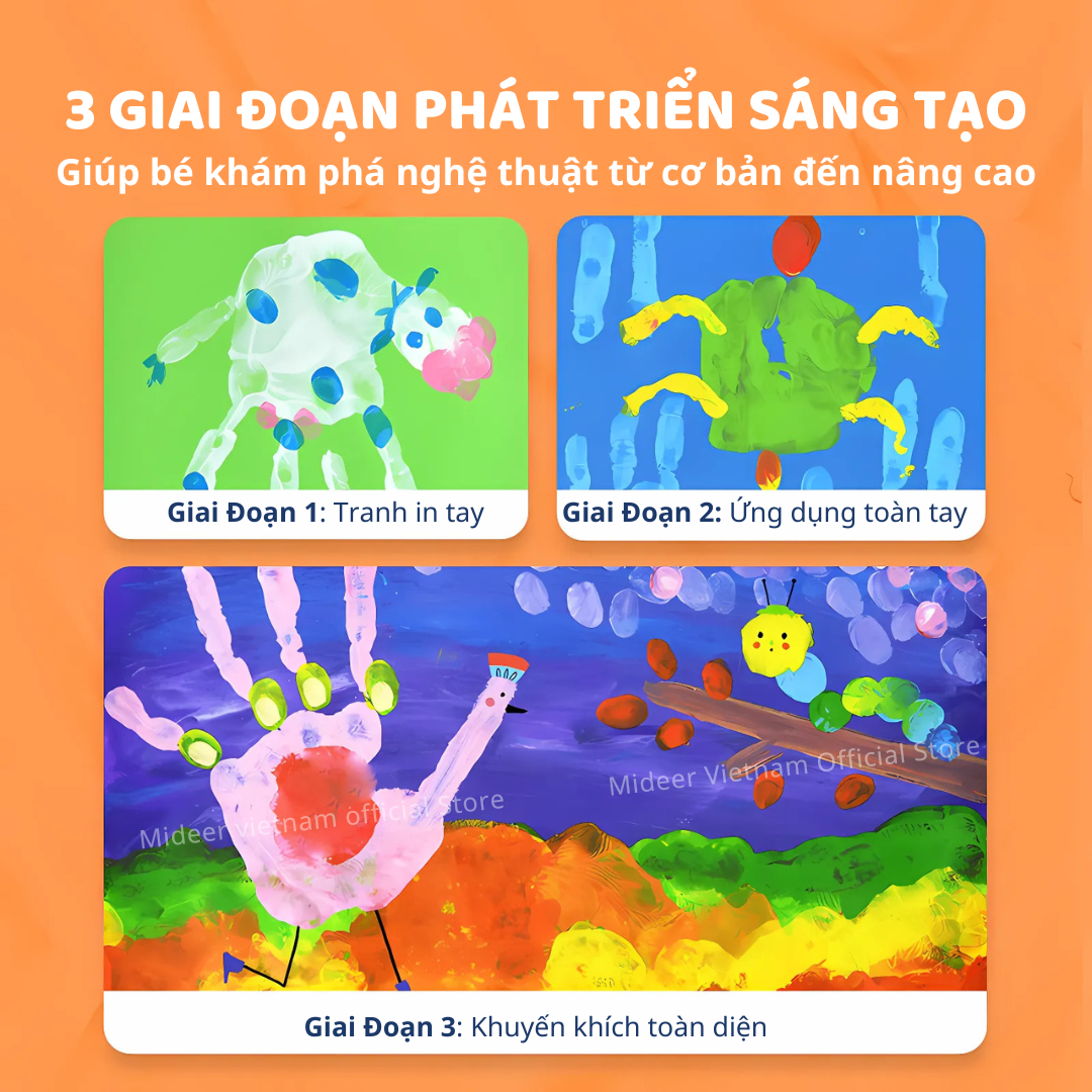 Mua tại TiktokCHÀO MỪNG BẠN ĐẾN VỚI MIDEER VIETNAM HÀNG SẴN SHIP HỎA TỐC, BẢO HÀNH CHÍNH HÃNG ————————————— Finger Paint Mideer màu vẽ mặt, vân tay, màu nước an toàn cho bé kèm sổ vẽ và dụng cụ Chào đón thế giới sáng tạo đầy màu sắc với Finger Paint Mideer, bộ màu vẽ đặc biệt được thiết kế dành riêng cho những đôi tay nhỏ bé. Được tạo ra để giúp trẻ em học vẽ qua cảm giác chạm và trải nghiệm thực tế, sản phẩm mang đến một phương pháp học mới mẻ và đầy hứng thú. Lý do ba mẹ nên lựa chọn Finger Paint Mideer màu vẽ mặt, vân tay, màu nước an toàn cho bé kèm sổ vẽ và dụng cụ