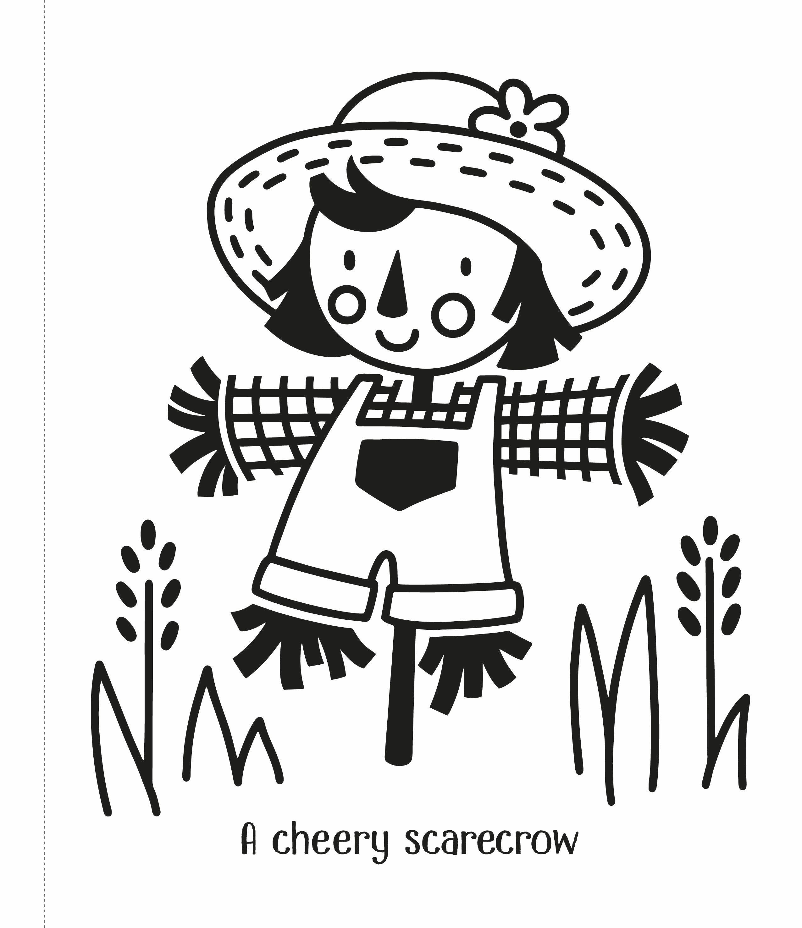 Filled with simple, stylish images designed to appeal to young children. Just brush water over the bold black and white designs to watch a sturdy tractor, a smiling scarecrow and a cheepy chick burst into colour.