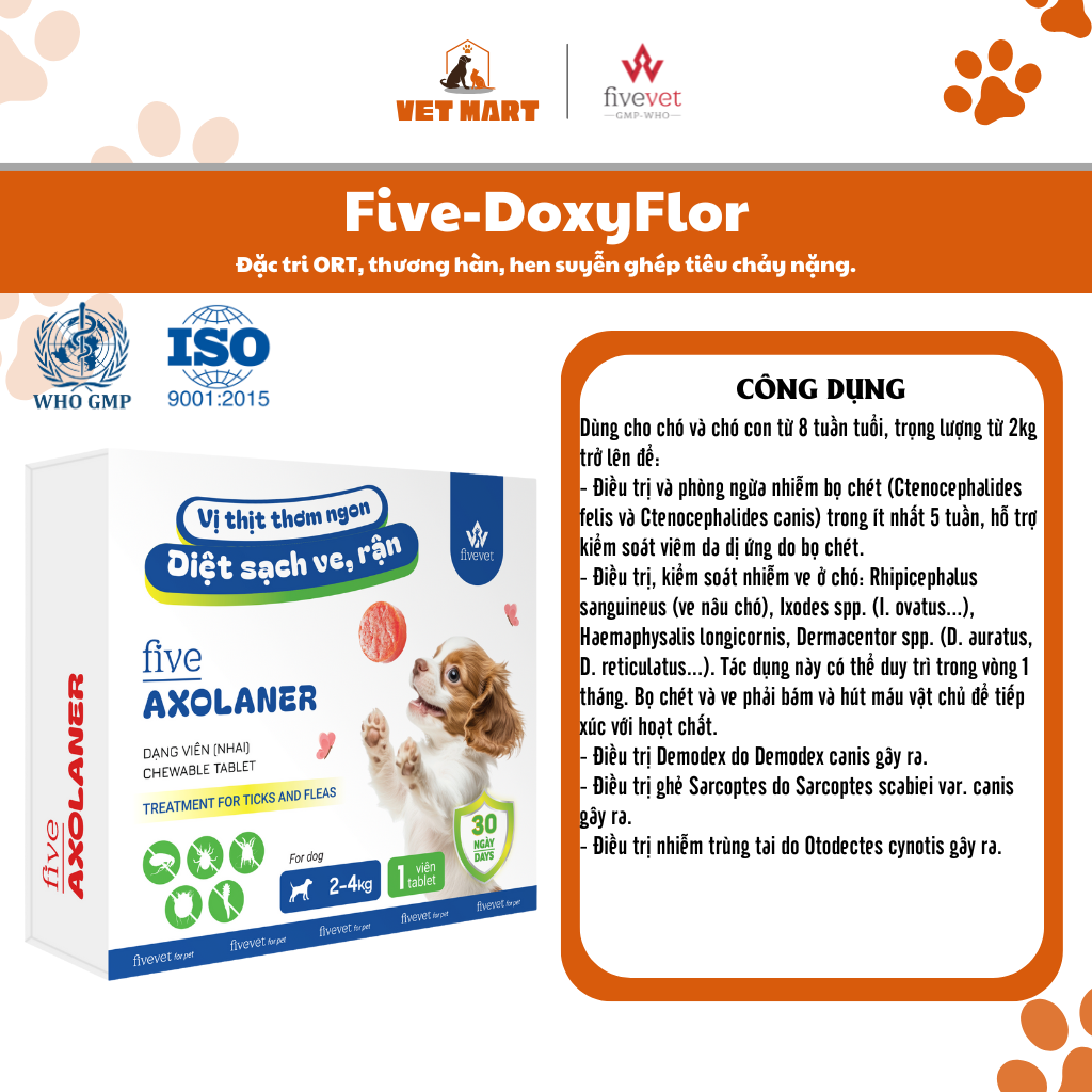✨Five-Axolaner Hỗ Trợ Kiểm Soát Ve Rận, Bọ Chét, Ghẻ Demodex, Sarcoptes Cho Chó Sạch Khỏe, An Toàn