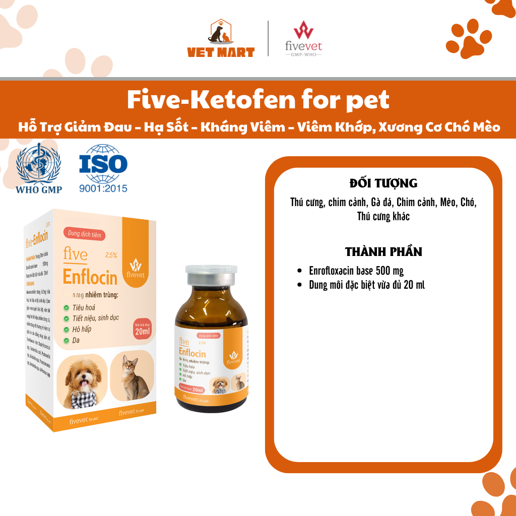 Mua tại TiktokFive-Enflocin 2.5% for Pet Hỗ Trợ Hô Hấp Tiêu Hóa Da Tiết Niệu Kháng Khuẩn Toàn Diện Cho Thú Cưng