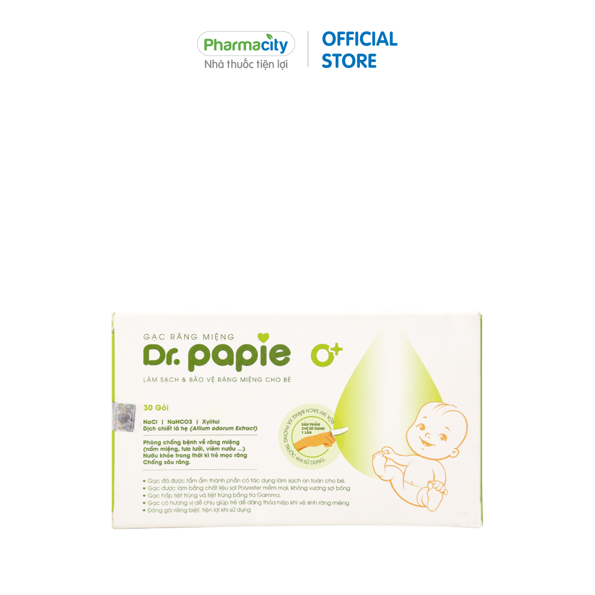 Công dụng Vệ sinh hàng ngày làm sạch lưỡi, nướu, răng, miệng cho từ sơ sinh trở lên. Tăng cường cơ chế tự bảo vệ cho lưỡi, nướu, răng, miệng (nấm miệng, tưa lưỡi, viêm nướ) giúp nướu khỏe trong thời kỳ trẻ mọc răng