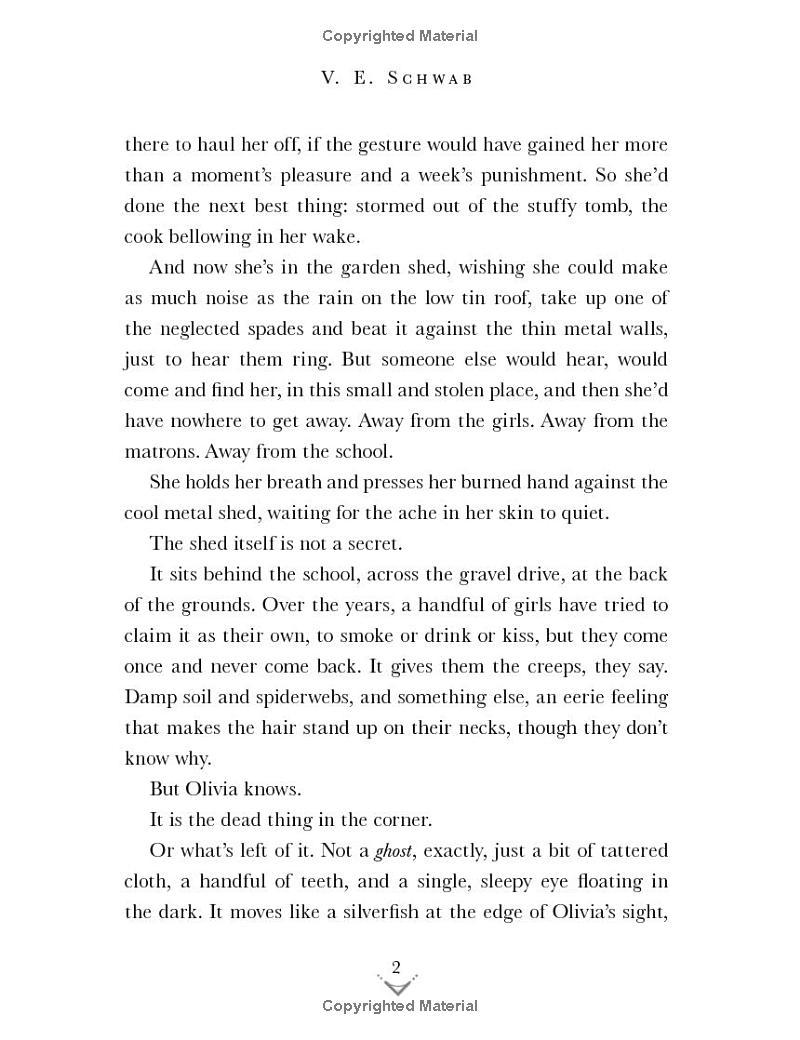 New York Times–bestselling author V. E. Schwab crafts a vivid and lush novel that with the demons that are often locked behind closed doors. An eerie, stand-alone saga about life, death, and the young woman beckoned by both. Readers of Neil Gaiman, Holly Black, Melissa Albert, and Garth Nixwill quickly lose themselves in this novel with crossover appeal for all ages.