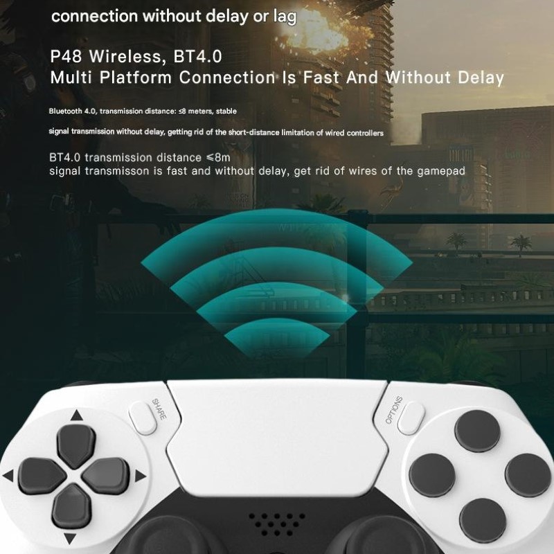 . Gamepad Tay Game Không dây Bluetooth P48 cho máy tính , laptop , smartphone . Kết nối : không dây Bluetooth hoặc cắm cáp TypeC . Nguồn : Pin sạc , Cổng sạc TypeC . Trọn Bộ bao gồm Gamepad + Dây sạc TypeC . Cần điều khiển 360 độ . hỗ trợ đầy đủ tính năng ( cảm ứng + loa + rung + led )   . Thiết bị hỗ trợ : sử dụng cho máy tính - điện thoại - Máy tính bảng - máy game P3/P4 . Hệ điều Hành Hỗ trợ :  Android + Window + iOS + Mac + Steam + P3/P4 . Nhựa an toàn ABS , Chất lượng hoàn thiện cao.   . Điểm Nổi Bật : . Thiết kế ôm tay , sang trọng , thoải mái trong thời gian dài . 2 chế độ kết nối không dây hoặc có dây tiện lợi . Máy tính nhận như tay P4 hoặc X360 . Điện thoại , máy tính bảng nhận như tay P4   . Bảo hành 6 tháng , Đổi mới 7 ngày đầu tiên . Có thẻ bảo hành kèm theo sản phẩm khi nhận hàng . Có hỗ trợ phí ship cho khách ở xa khi cần bảo hành