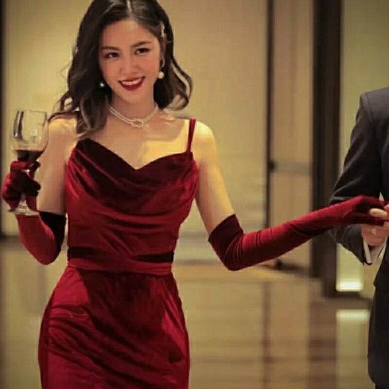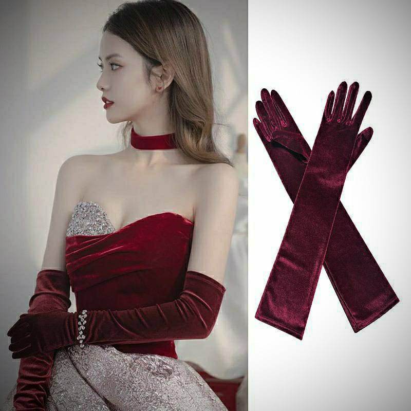 ✨Găng tay chất liệu nhung màu đỏ cho Cô dâu và Dạ hội, đi tiệc, sự kiện, đạo cụ chụp ảnh MS: 44748