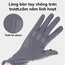 - Găng tay chống nắng dài xỏ ngón cái che mu bàn tay vài thun lạnh thoáng mát co giãn tốt không tụt - Chất liệu vải thun lạnh, thoáng mát, thấm hút tốt, co