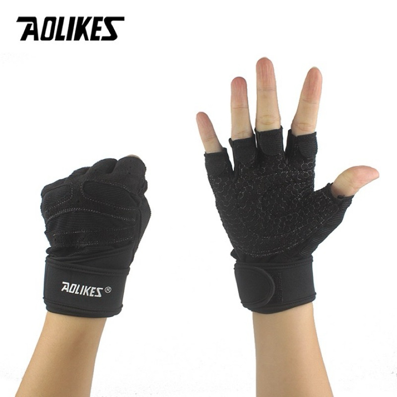 AOLIKES HW 1540 - 1 đôi - Găng tay cuốn hở ngón, chuyên gym ,chính hãng.