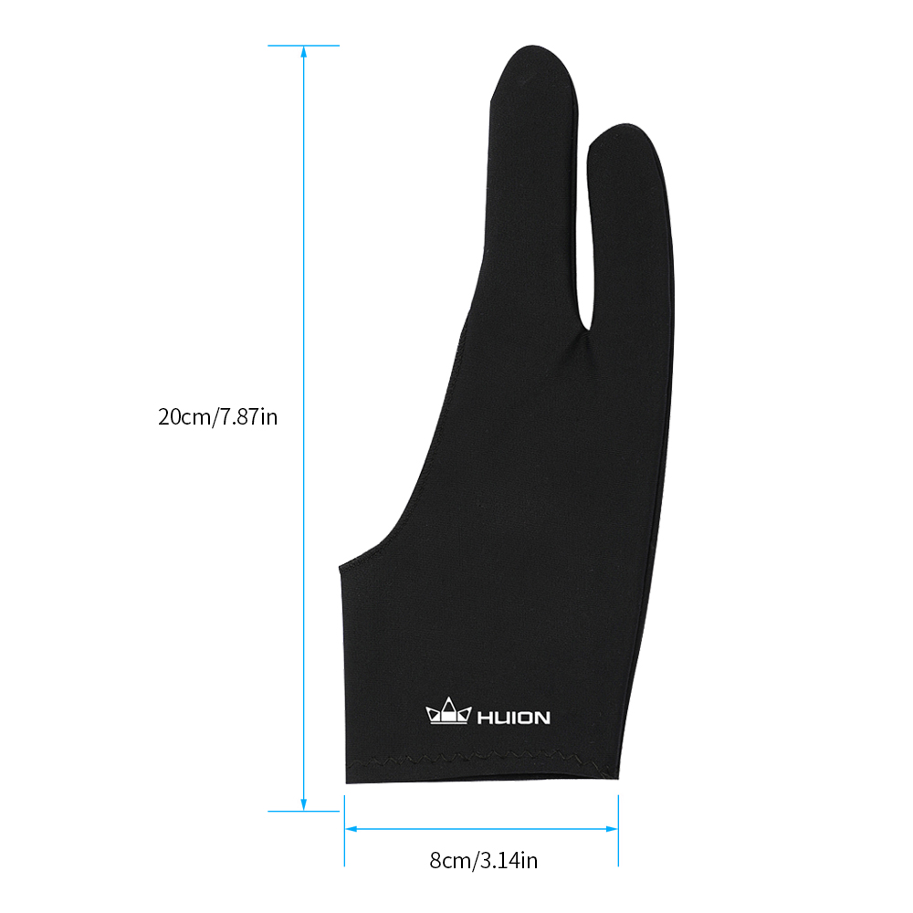 Features: Two-finger design anti-fouling glove, can prevent smudges from your hand on graphics tablet. Ergonomic design, comfortably fit your hand. Made of soft lycra and nylon material, soft and smooth, extremely flexible, not easy to deform, comfortable and durable to wear. It can reduce the friction between your hand and the tablet surface, provide comfortable drawing experience. Package includes one free size glove which can be used on both hand. Compatible with Huion graphics tablets and pen displays. Specification: Brand: Huion Model: GL200 Color: Black Material: Soft lycra+nylon Length acorss knuckles: 9.5cm/3.74in Length of the wrist: 8cm/3.14in Length from wrist to middle finger tip: 20cm/7.87in Item weight: Approx.7g /0.25oz Package weight: 15g /0.53oz Packing list: 1 * Drawing Glove Note: This product only includes one glove.