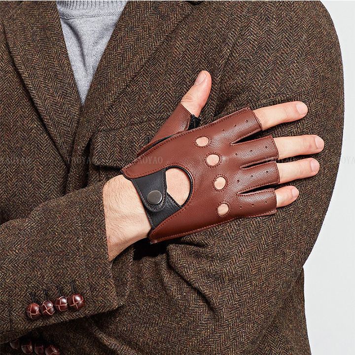 Găng tay hở ngón nam BHY8853 Bao da lái xe da cừu nguyên miếng