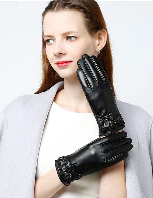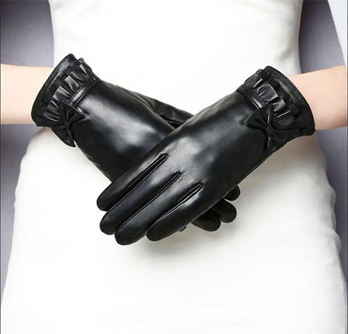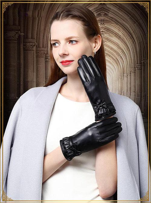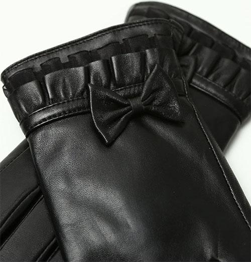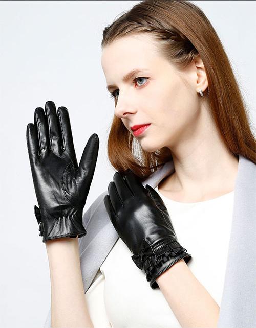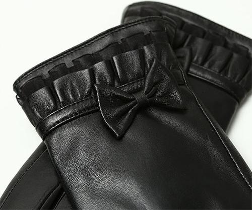 ✨Găng tay nữ da cừu phối nơ nữ tính - BHY8714 Bao tay nữ mùa đông, lót lông, giữ ấm, cản gió, chống nước, cảm ứng điện thoại.