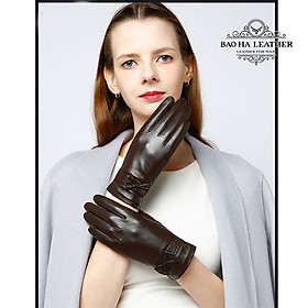 Găng tay nữ da cừu cao cấp BH6458 lót lông siêu ấm, cảm ứng điện thoại, chống nước, không bong tróc.