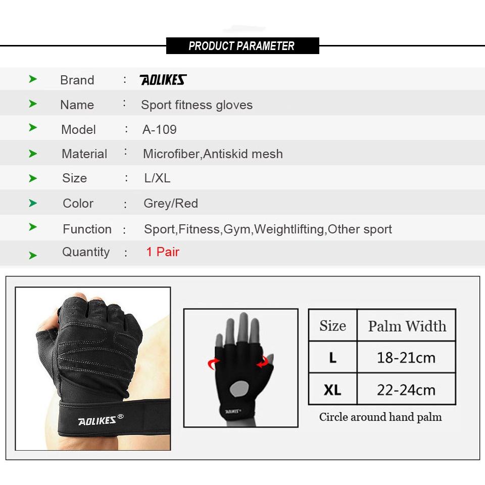 BÁN SỈ - Aolikes AL109 (1 đôi) Găng tay CÓ CUỐN CỔ TAY VÀ ĐỆM LÒNG chống trượt chuyên gym CHÍNH HÃNG