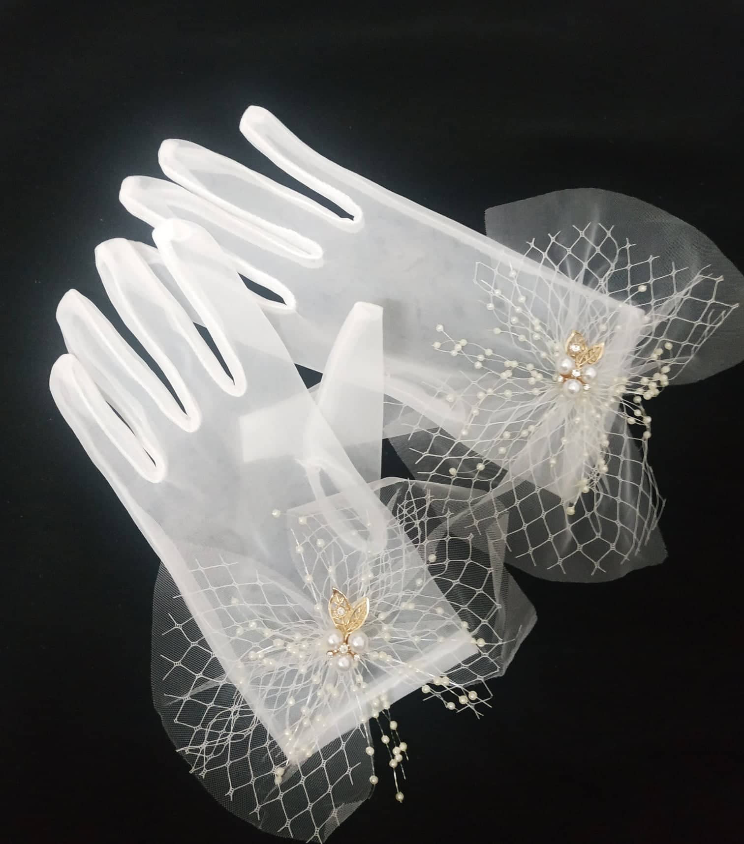 ✨Găng tay trong suốt đính ren lưới, ngọc trai cho Cô dâu và Dạ hội, đi tiệc, sự kiện, lễ hội, chụp ảnh MS: 43854