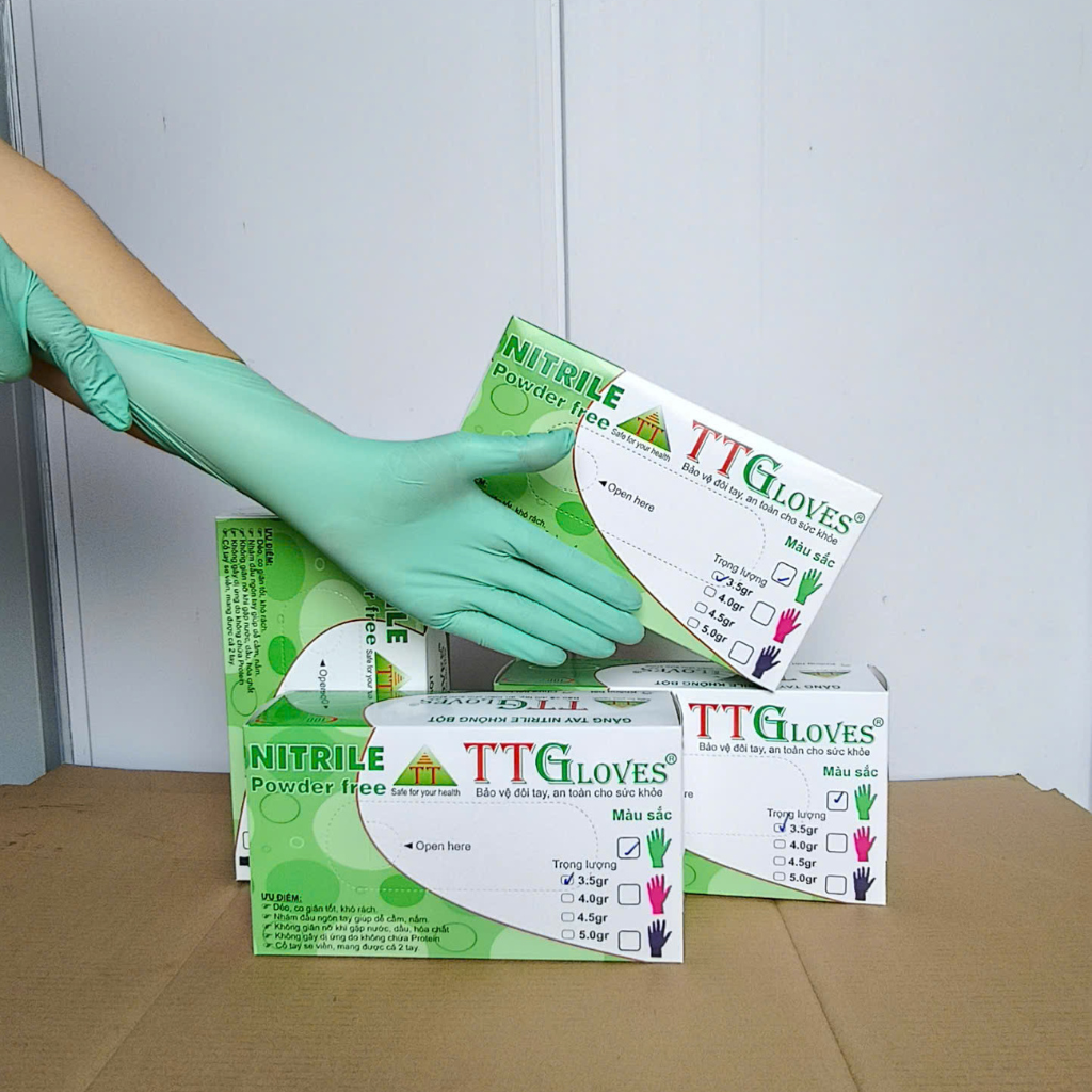 Găng Tay Y Tế, Bao Tay Cao Su Y Tế Không Bột Nitrile TTGLOVES Siêu Dai Màu Xanh Lá Độc Đáo 3.5g 100 Chiếc Size M THÔNG TIN SẢN PHẨM + Tên sản phẩm: