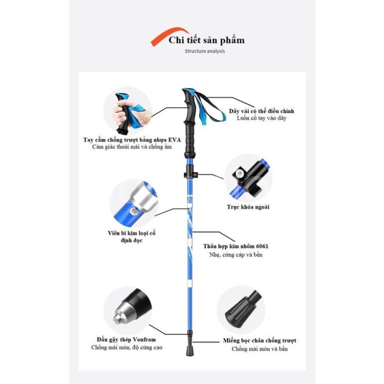 [CHÍNH HÃNG] Gậy leo núi trekking dododios gấp khúc dùng phượt, dã ngoại đa năng dành cho nam và nữ tiện lợi