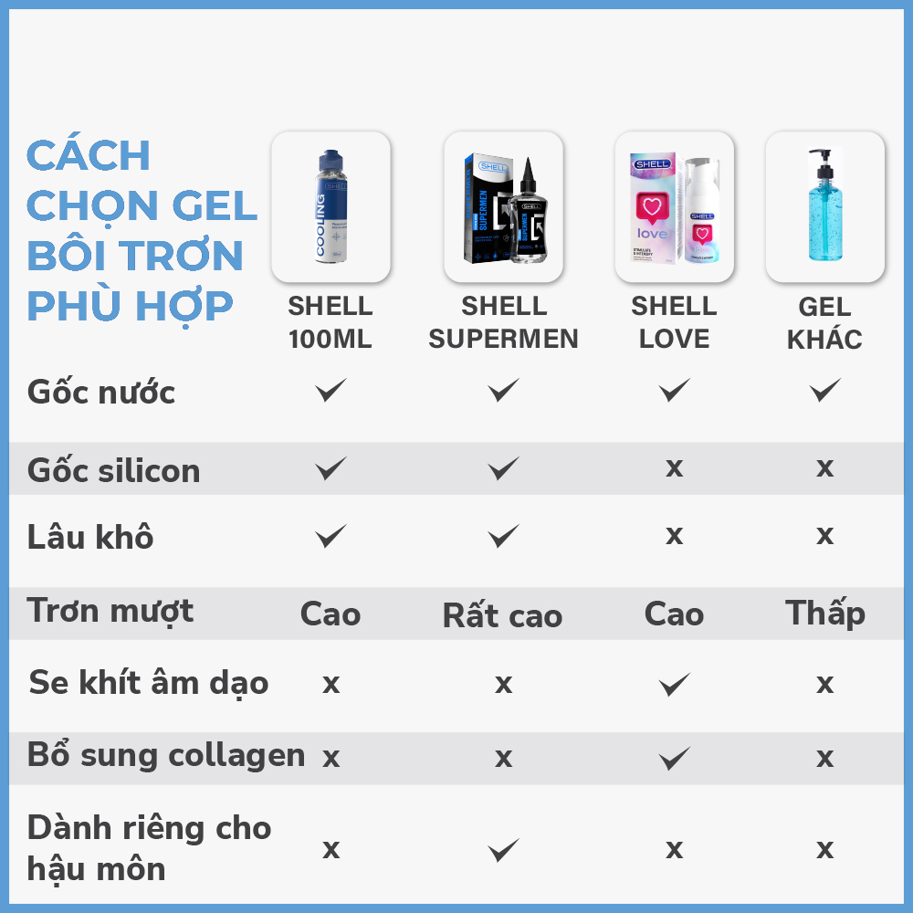 ✪ Thông tin: Nếu bạn đang tìm kiếm sản phẩm không chỉ hỗ trợ quan hệ truyền thống một cách trơn tru, mà còn hỗ trợ quan hệ cửa sau dễ dàng, giúp giảm cảm giác đau rát khi ân ái, thì gel bôi trơn hậu môn Shell Supermen Cooling là sự lựa chọn tin cậy. Gel bôi trơn hậu môn Shell Supermen Cooling tạo cảm giác mát lạnh cho cuộc "yêu" với thiết kế dành riêng cho cộng đồng LGBT với đầu ống bơm tiện lợi dễ dàng sử dụng bôi trơn làm giảm ma sát, đau rát khi quan hệ cửa sau đối với các cặp đôi đồng giới.