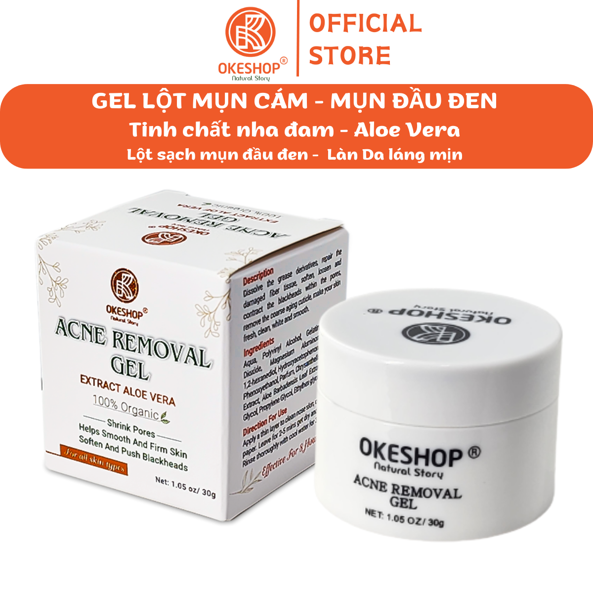 Gel lột mụn OKESHOP được sản xuất trên công nghệ tiên tiến của đài loan, với sản phẩm Kem lột mụn tinh chất Lô Hội và Than Tre chứa các thành phần thiên nhiên giúp thẩm thấu làm sạch sâu bề mặt da và lỗ chân lông, nhổ sạch các loại mụn cám, mụn đầu đen, bạ nhờn, tế bào chết, cùng các lớp sừng nằm sát dưới bề mặt da mà mắt thường khó có thể thấy được, giúp da sạch bóng láng mịn, không còn mụn và đồng thời thành phần hoạt chất có trong gel giúp thu nhỏ lỗ chân lông và giảm các tác nhân gây mụn mủ, mụn bọc, mụn cám, mụn đầu đen.