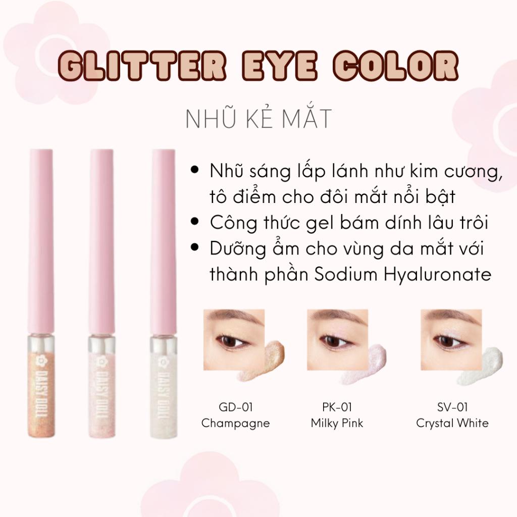 ✨Gel Nhũ Kẻ Mắt Kim Tuyết Daisy Doll By Mary Quant Dạng Lỏng Chống Thấm Nước Nhanh Khô Bền Màu PK-01 Milky Pink (2,8g)