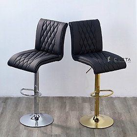 Ghế Quầy Bar, Ghế Xoay Chân Cao Mạ Vàng Nhập Khẩu Mẫu Nhựa Da Trong Đệm Đen 59-80cm Xoay 360 độ