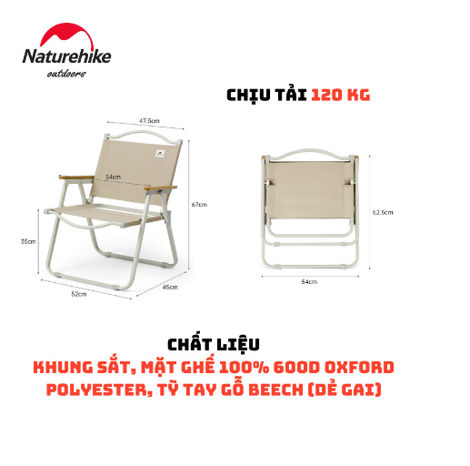 MÔ TẢ SẢN PHẨM THÔNG TIN SẢN PHẨM - Thương hiệu: NatureHike - Mã sản phẩm: NH17T003-Y - Chất liệu: Vải offord 600D, nhôm, gỗ - Tải trọng tối đa: 120kg - Kích thước sử