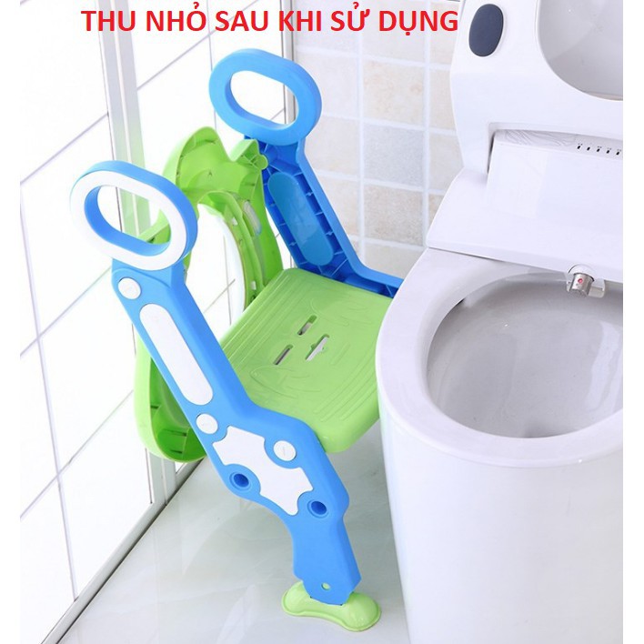 Ghế nắp bệ thu nhỏ kèm miếng lót ngồi bồn cầu toilet có thang cho bé