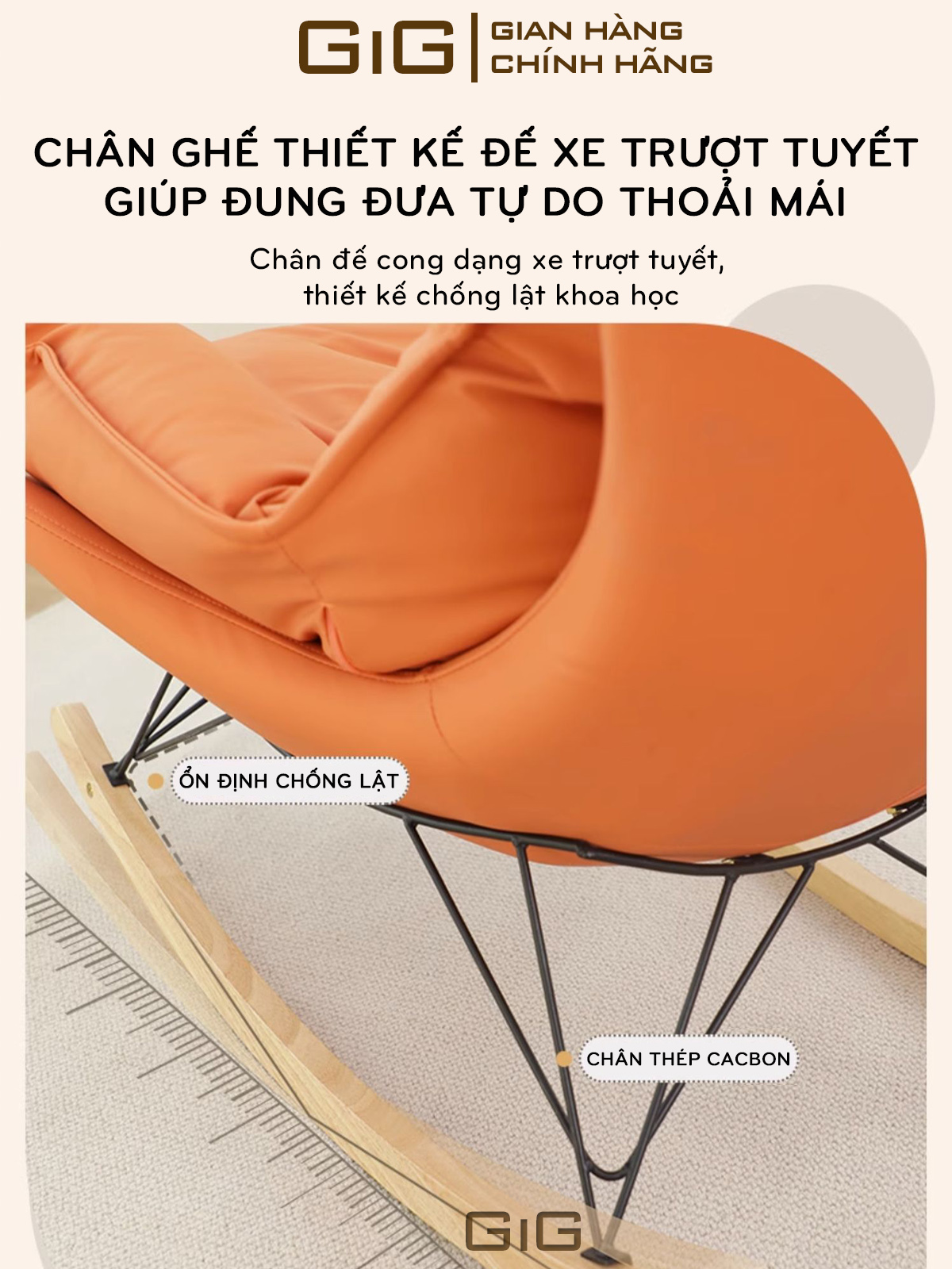 - Thiết kế Chân bập bênh ghế được làm từ gỗ sồi chắc chắn chống mối mọt hiệu quả.