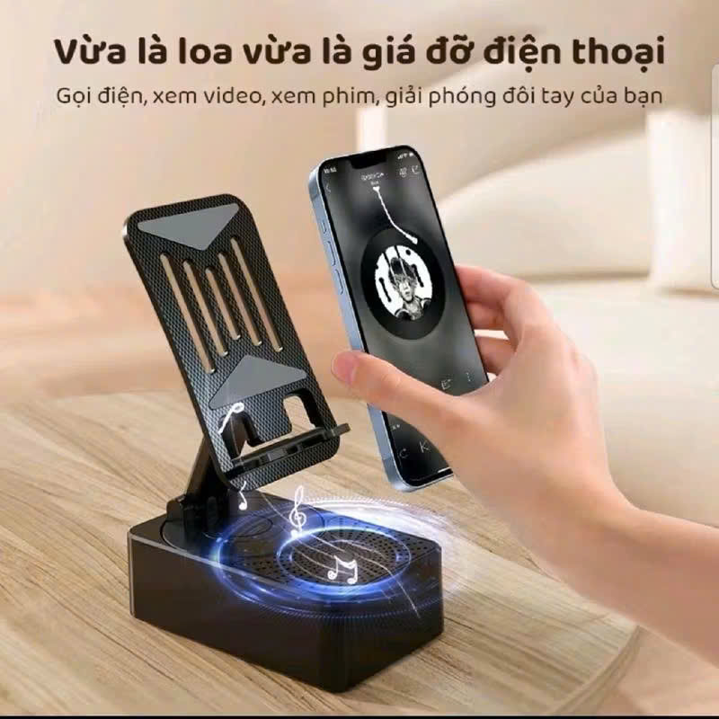 Tương Thích Với Nhiều Thiết Bị: Giá đỡ điện thoại phù hợp với hầu hết các loại điện thoại di động đến các dòng điện thoại Android khác. Loa Bluetooth kết nối nhanh chóng với các thiết bị điện thoại, máy tính bảng hoặc laptop thông qua Bluetooth.
