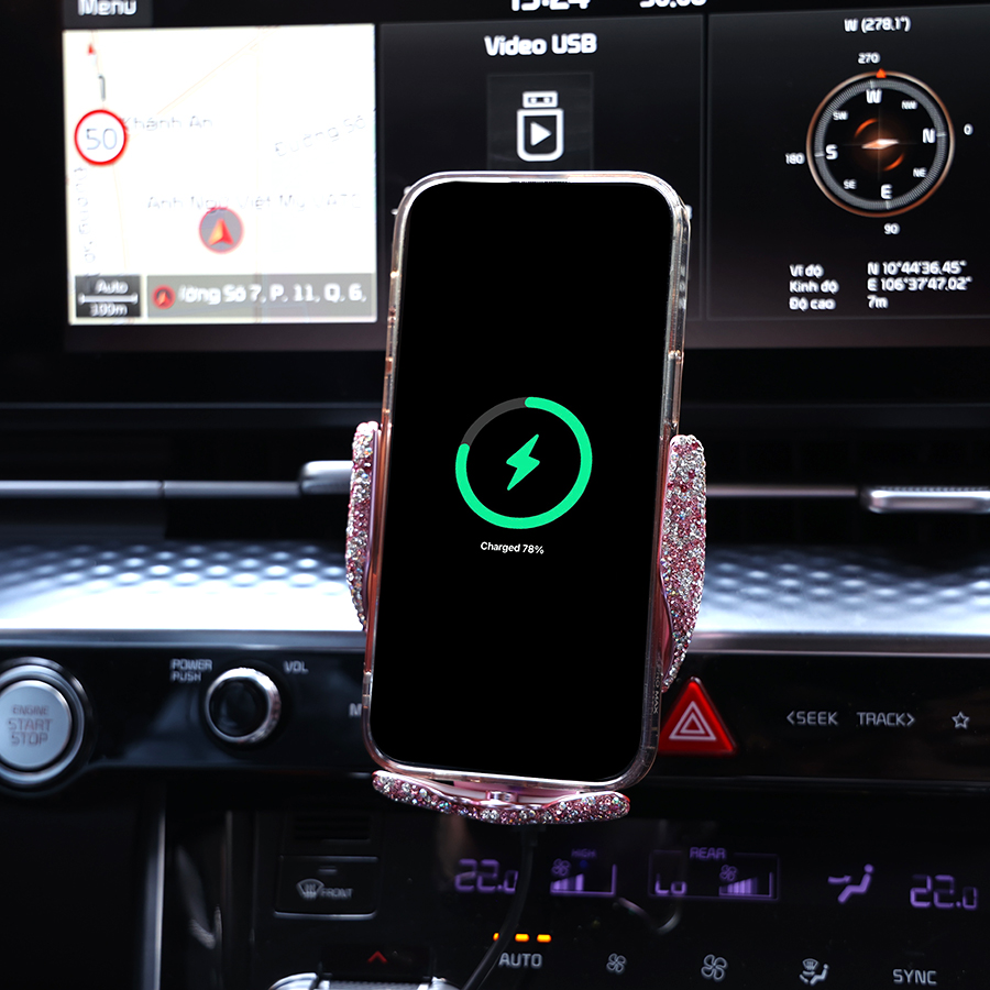 Công dụng của Giá Đỡ Điện Thoại Đính Đá Sang Trọng Cảm Biến Hồng Ngoại Kẹp Mở Tự Động Kiêm Sạc Không Dây Trên Ô Tô CIND V56