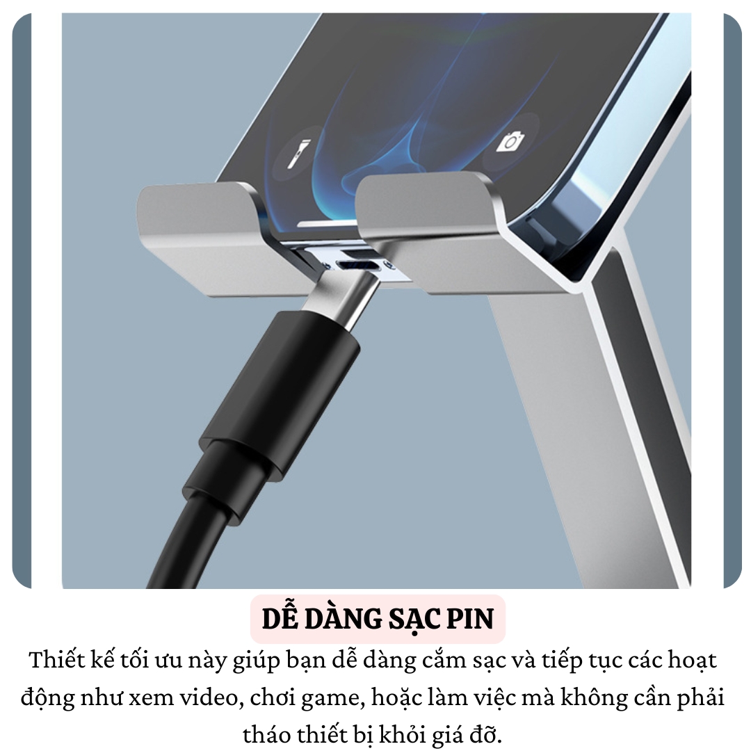 - Không Chặn Cổng Sạc: Thiết kế thông minh không cản trở cổng sạc, cho phép bạn vừa sạc vừa sử dụng thiết bị một cách thuận tiện mà không gặp trở ngại nào.